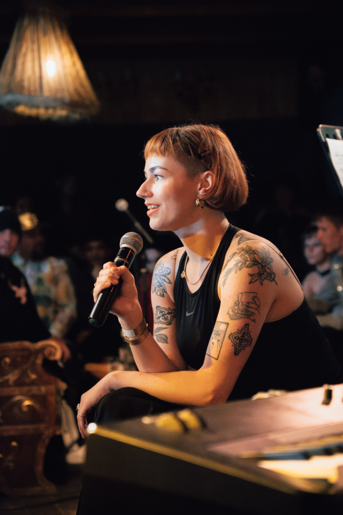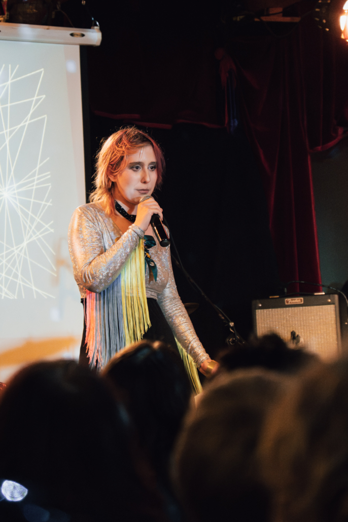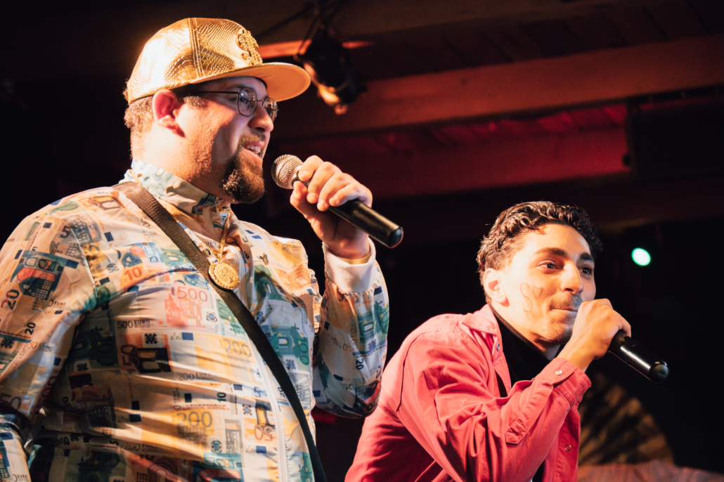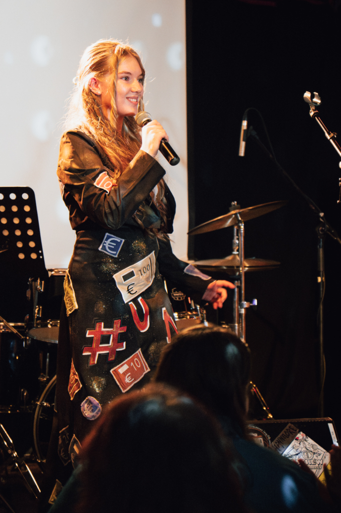 Zwei Alumni des STREET COLLEGEs erzählten über ihre Erfahrungen und darüber, was ihnen das SC bedeutet: „Das STREET COLLEGE ist für mich ein ganz besonderer Ort – denn er hat mir durch eine einsame und komplizierte Zeit geholfen. Dort habe ich Menschen getroffen, die ähnliche Erfahrungen gemacht haben wie ich. Menschen, mit denen ich mich verstanden gefühlt habe – und aus denen echte Freundschaften entstanden sind,“ erzählte P., eine ehemalige Studierende aus der Freien Kunst. Überhaupt erzählten viele der Künstler*innen zu Beginn ihres Auftritts, dass ihr künstlerischer Beitrag dann entstanden ist, als sie in einer schwierigen Phase ihres Lebens steckten.