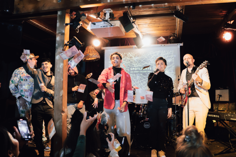 „I need a dollar“ von Aloe Blacc war der Ohrwurm des Abends: Am Ende der Show der diesjährigen Gala performten Jugendliche den Song mit selbst geschriebenen Textpassagen. Passend zum Motto des Abends „Ohne para* – ohne uns!“ flogen dazu Falschgeldscheine in das Publikum. Einmal im Jahr zeigen Jugendliche aus dem STREET COLLEGE auf einer besonderen Bühne, was sie können und gelernt haben. Dieses Mal, um bewusst zu machen, was es alles nicht mehr geben wird, wenn öffentliche Gelder im sozialen Bereich weiter gekürzt werden.