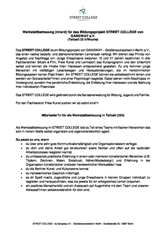 20251112_STREETCOLLEGE_Stellenanzeige_Werkstattbetreuung